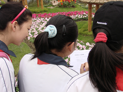 4月27日,我们南模中学的同学一同去上海植物园春游。一路上,大家都兴奋得谈论着春游活动,激动不已。终于到了植物园,一下车,抬头就可以看见“上海植物园”这个大字高高矗立着,很是显眼。