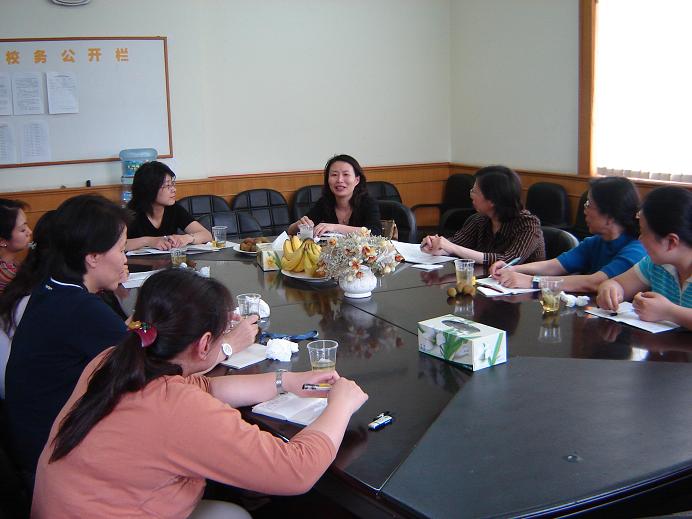 5月23日下午,英语教研组荣幸地请到了区教院英语教研员周珽老师共同参与他们的校本教研活动。本次活动的主题是如何写好规范教案。周珽老师就该主题为各位老师作了详细的介绍。讲座中,周老师逐一对规范教案的几个方面进行了讲解。例如:目标的确立、重点和难点的突破、教学工具的使用、教学步骤的安排、口头和笔头作业布置、板书设计等等。英语组的老师们在听了周老师的报告后,对于规范教案的写法有了更深入的了解。周老师同时还介绍了“教案与教学设计的区别”、“详案和简案的使用”、“课堂活动的控制”等等,周老师特别强调了学生的多样性,教学的设计应以学生为本,考虑到不同层次学生的需求。老师们在与周老师的座谈中提出了自己在教学实践中所碰到的诸多问题。如徐校长提出“对于学生而言,阅读理解中的完型填空是教学中的难点,该如何突破?”、戴佳敏老师问“八、九年级的课文比较长,该如何处理第一课时”等等。周老师对于老师们提出的问题耐心细致的一一作答,提供了很多有益的信息和建议。英语教研组的老师们感到这次活动受益匪浅。