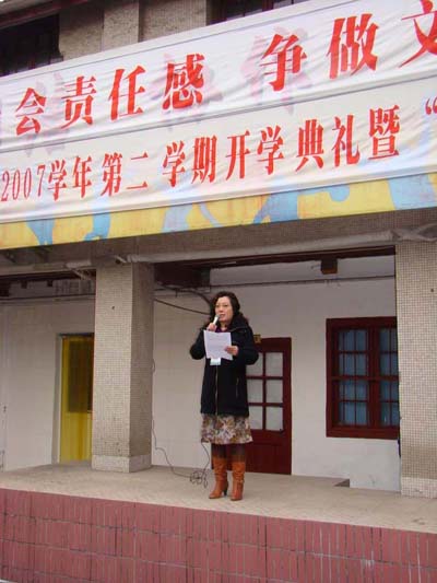 在郑芝英校长的新学期致词中,她重点引用了温家宝总理除夕夜在江西财大对大学生所说的一番话,并以此与全校师生共勉。发言中,她说道:“温家宝总理除夕夜亲临江西财大语重心长地对大学生说:灾害使我们受到了一些损失,但也使我们从中懂得许多东西,增强了我们继续前进的信心、勇气和力量。温总理勉励同学们,身在校园里,心想天下事。艰难困苦,玉汝于成。只有经过千锤百炼,才能刚毅果敢,坚强不屈。遇到困难时,要勇于面对、毫不躲闪,努力克服,大胆前进。这就是每个青年应该树立的人生观和世界观。那么,今天我想对全体师生所说的就是我们要深刻领悟这些优良品质和它所蕴含的无穷的力量。这也是在新的学期里同学们需要学习和体悟的精神,学会充满信心、勇敢地去面对困难,学会用坚强的毅力去抵御挫折,学会大家一起团结一致、互帮互助从而化解困难,这样的话没有什么是克服不了的。”