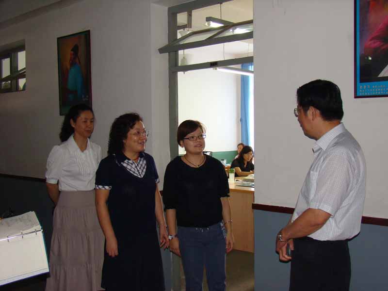 最后,局领导来到了教学楼。视察了工会活动室之后来到了六年级办公室。局领导亲切地和六年级老师握手交谈。王局长并仔细询问了从金山来我校学习的教师的情况,并关心地询问其在上海工作学习的各方面是否安排妥当。