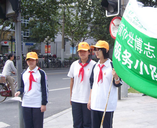 我校志愿服务队的队员在校内也开展清洁家园的活动,每一次志愿服务的经历,使队员们不断认识自我、提升自我、、完善自我。队员们用实际行动迎接世博盛会,展示了南模初中队员的良好风采。