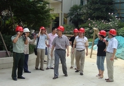 2010年8月16日下午,教育局沈建华副局长、基建站中教科相关领导及消防专业人员,来到正在全面铺开加固工程的南模初中工地检查消防工作。