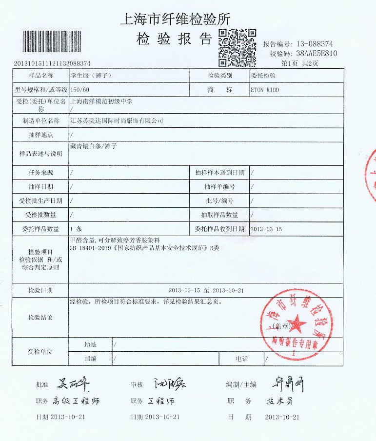 学生校服检查报告