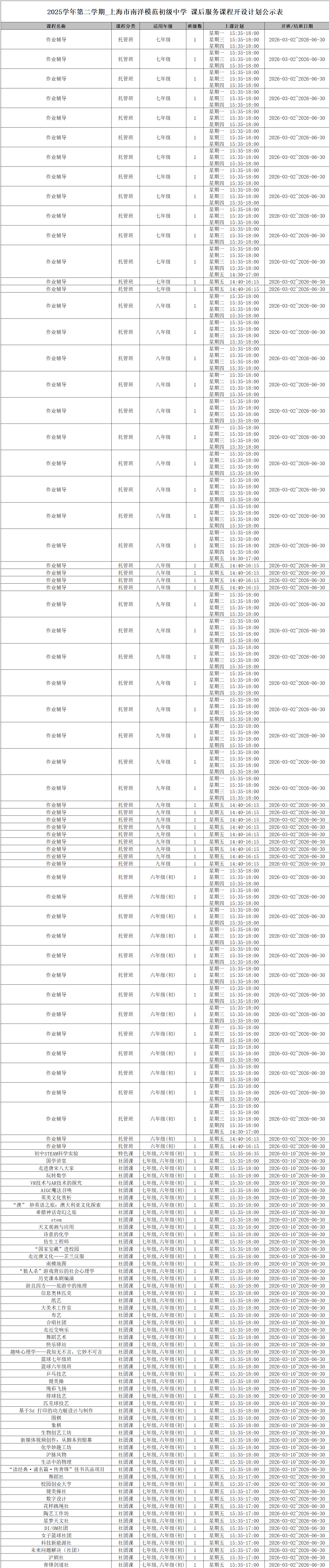 2025学年第二学期上海市南洋模范初级中学 课后服务课程开设计划公示表